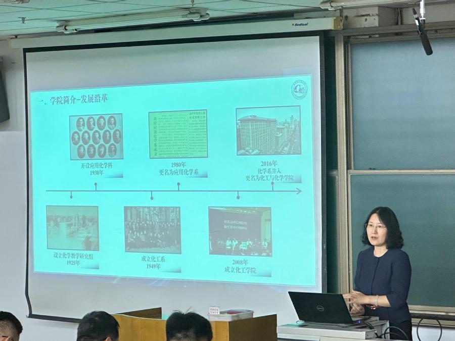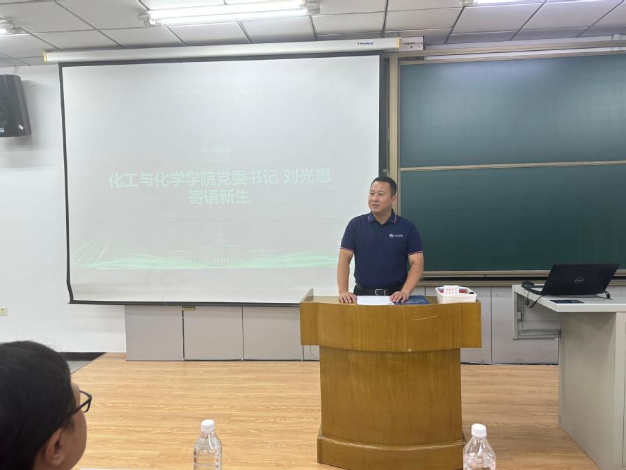 首先,院长吴晓宏以“化万物之美工国之所需”为主题,从学科背景、师资力量、发展方向、专业特色等角度详细介绍了学院的情况,深入浅出地展示化工、化学学科的独特魅力,彰显新时代化工人的担当与使命。同时鼓励新生:要夯实专业基础,苦练本领、增长才干,在矢志奋斗中谱写新时代的青春之歌。