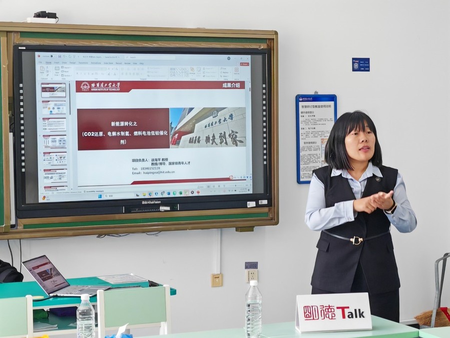 徐海平老师首先为同学们介绍了我国实施“双碳”战略的背景及有效途径,从课题组研究方向入手,展示新能源存储和转化、单原子催化剂、先进功能材料及其储能器件方面的研究工作。随后,徐老师与同学们进行交流互动,鼓励学生要夯实专业基础,努力打造新的能源发展模式,研发新科技,基于化学、材料、物理、能源等多学科交叉,为我国“双碳”战略实施提供技术、能力、人才的支持。