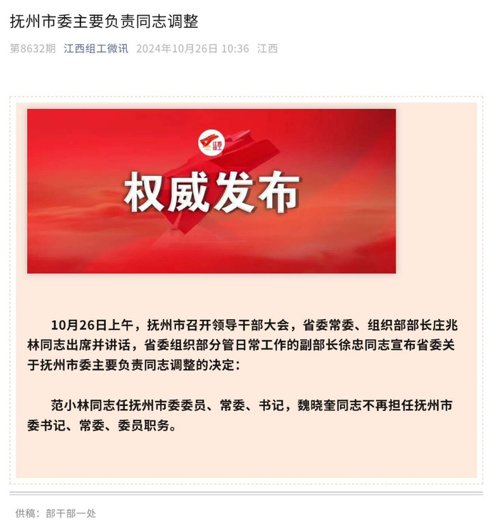 喜报丨我院校友范小林就任江西省抚州市委书记