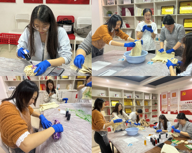 围绕学生需求,邀请先进典型,发挥先锋模范作用。11月14日,党支部开展了趣味扎染活动。在了解了扎染的历史背景、基本原理和操作流程后,大家纷纷动手,利用不同的结扎技法,如折叠、捆绑、夹子等,创造独一无二的作品。随后,将布料浸入特制的染料中,浸泡、氧化、解开结扎,每一块都独具特色。此次趣味扎染活动不仅让支部成员感受到了传统文化的魅力,还增强团队凝聚力。未来支部将继续探索更多形式的文化活动,丰富同学们的课余生活,传承和弘扬中华优秀传统文化。