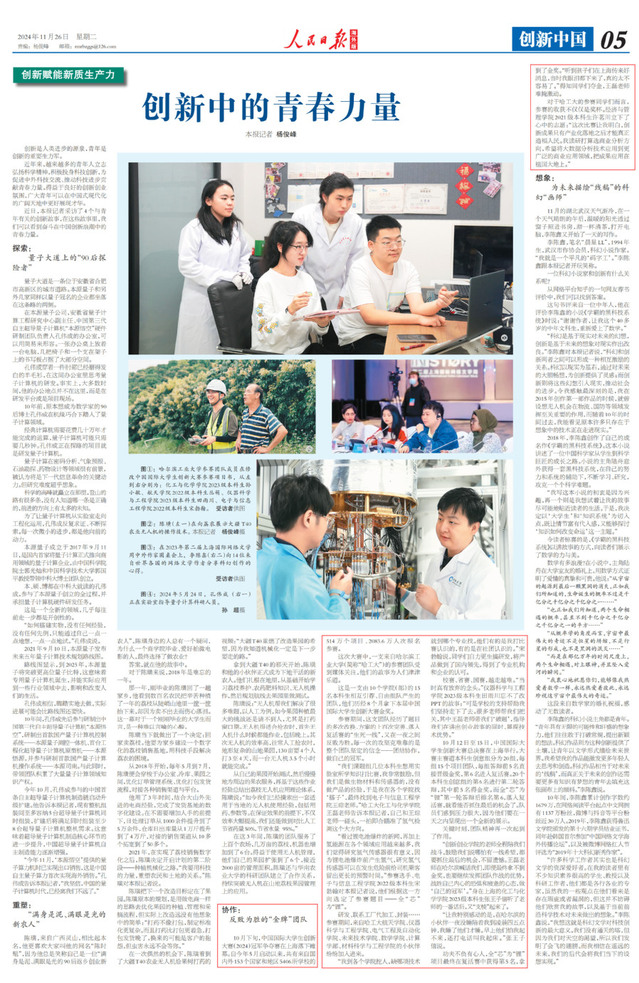 11月26日,《人民日报》海外版推出报道《创新中的青春力量(创新赋能新质生产力)》,采访了4个与青年有关的创新故事。其中《协作:反败为胜的“金牌”团队》聚焦我校获2024年中国国际大学生创新大赛金奖的全“芯”为“锂”团队,讲述了包括我院2023级本科生张王子僖、孙小敏在内的几位学子团结协作、攻坚克难、落入复活赛又反败为胜的故事。