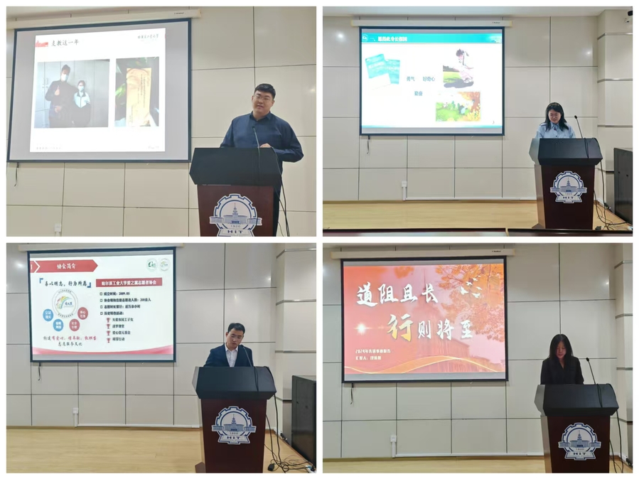 会上,2023级硕士生白皓讲述了自己在新疆为期一年的支教经历,建议同学们培养无私奉献、勇担重任的优良品格,在实践中锤炼自我;2024级硕士生杨玉麒结合自身创业经历,分享自己在科研竞赛、创新创业方面的探索故事,并展示已取得的丰硕成果,激励同学们要勇于探索未知领域,敢于挑战自我、突破自我;2021级本科生欧迎刚分享了“校十佳集体”——爱之翼青年志愿者协会助力留守儿童健康成长的感人故事,并介绍“逐梦课堂”乡镇小学支教活动,鼓励同学们积极参与;2022级本科生段依彤讲述了自己为理想努力奋斗的故事,从理想信念、学习方法、行为态度等方面分享自己的成长经历和宝贵经验,提醒同学们要在大一年级扎实专业基础,脚踏实地、厚积薄发。