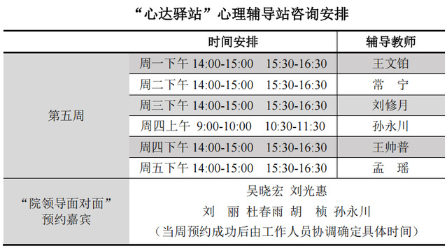 【心达驿站】太阳成城集团tyc234cc心理辅导站第五周预约安排通知