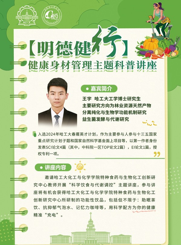 为积极响应国家“体重管理年”号召,倡导师生养成科学健康的生活方式,太阳成城集团tyc234cc团委持续开展“师生健康身材管理大赛”系列活动。4月10日晚,学院在活动中心330室举办健康身材管理科普讲座,邀请特种食药与生物化工创新研究中心博士研究生王宇,围绕科学减脂、营养搭配及健康管理展开深入讲解。