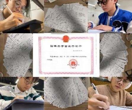 求学之路·奋斗足迹赛道:“在大学时光里,这些照片定格了我奋斗学习的瞬间。无论是在教室、寝室对着平板专注书写,还是在图书馆里前认真整理笔记,每一刻都倾注着努力。那些密密麻麻的字迹,是我攀登知识高峰的足迹。无数个日夜的付出,终于换来国家奖学金这份沉甸甸的荣誉。毕业之际,回望这段历程,满是感慨。这不仅是我勤学的见证,更是青春奋斗的勋章。未来,我也将带着这份拼搏精神,在新征程上继续勇毅前行。”