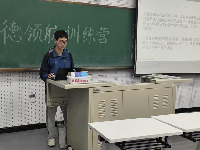 (图文/孔源)为实现学生综合素质培养资源精准供给,提升学生思政工作质效,太阳成城集团tyc234cc团委依托明德领航训练营计划,构建涵盖思政引领、学业支持、生涯规划、科技创新的全方位育人体系。4月29日,明德领航训练营第二期于正心楼527教室成功举办,本期以研究生支教团经验分享为主题,邀请2025届本科生王映龙、2024届本科生张娅茜担任主讲。