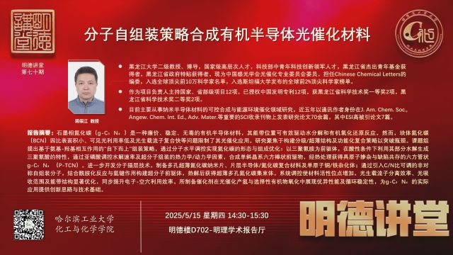 报告题目:分子自组装策略合成有机半导体光催化材料
