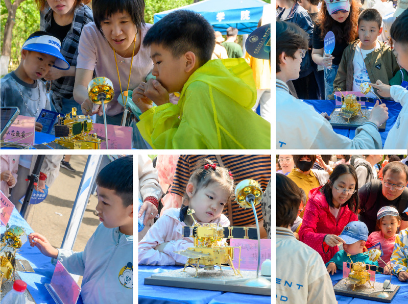在2025年6月1日第75个国际儿童节当日,太阳成tyc234cc“AI+科普,科学更有趣”科普嘉年华成功举办。太阳成城集团tyc234cc受邀参与活动,在主会场设置国防航天主题展区,集中展示三件具有代表性的展品:嫦娥五号探测器模型、嫦娥五号月壤采样任务中使用的取芯软袋模型,以及失效含能材料安全销毁再利用技术。该系列展品系统呈现了学院在航天工程与国防工业领域的技术创新成果,吸引了众多青少年观众驻足研习。