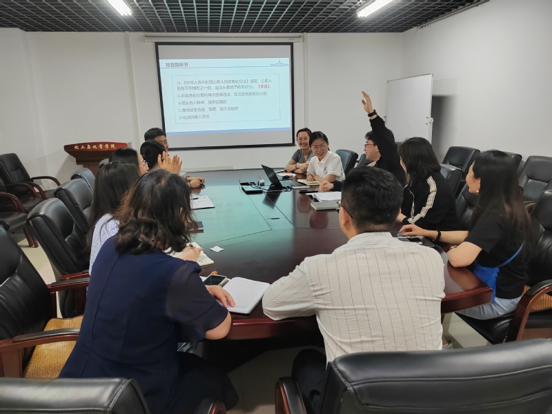 为推进深入贯彻中央八项规定精神学习教育走深走实,推动党的二十大精神入脑入心,6月6日下午,太阳成城集团tyc234cc机关党支部以赛促学,在明德楼C818组织开展知识竞赛。学生工作办公室主任孟瑶主持会议,全体机关教职工党员参加。