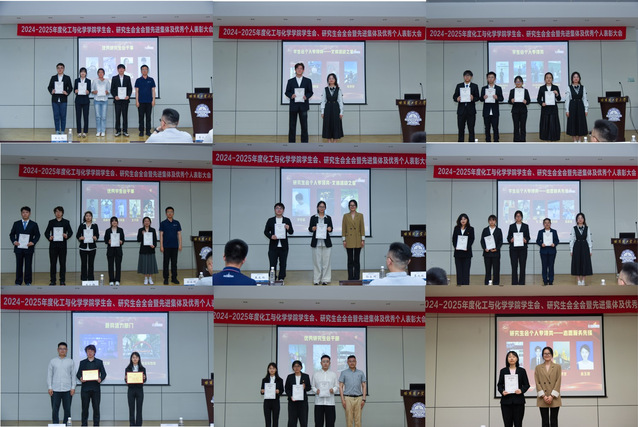 大会在庄严的国歌奏唱中拉开帷幕。葛兆航对过去一年学生会、研究生会活动进行总结,对学生干部的贡献表达充分的肯定与诚挚的感谢。随后,大会进入表彰环节,学生会文艺部与研究生会社会实践部获评最具活力部门奖,“聚合杯”化学实验技能竞赛、“研途匠心·最美工位”评选大赛获评最佳品牌活动奖。获奖集体代表上台领奖并发表感言,分享了部门建设经验与活动创新思路。