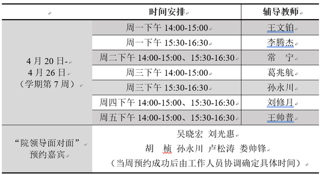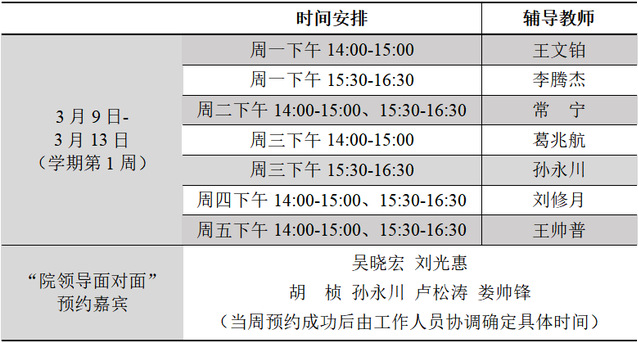 2.“院领导面对面”采用灵活预约的形式,学生可根据自身需求预约嘉宾,预约成功后由工作人员协调确定具体咨询时间,每人(每团队)咨询时间在30-60分钟左右。