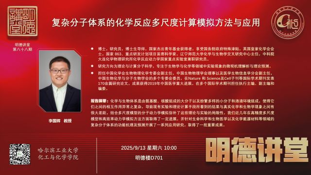 报告题目:复杂分子体系的化学反应多尺度计算模拟方法与应用