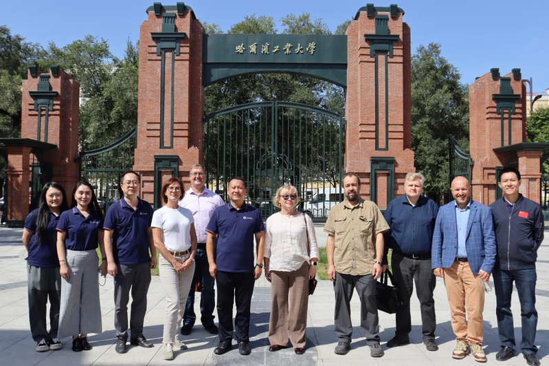 揭牌仪式后,俄方代表团参观中俄联合校园,考察融合中俄建筑特色的教学空间,实地感受百年中东铁路历史街区与现代化教育载体的时空对话。在当日活动中,中俄双方代表还参观了哈工大博物馆,系统回顾两校自20世纪50年代起在航天化学、材料科学等领域的合作渊源,见证历史积淀与当代创新的深度共鸣。