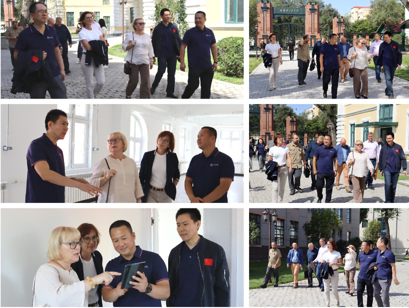 揭牌仪式后,俄方代表团参观了中俄联合校园,考察了融合中俄建筑特色的教学空间,实地感受百年中东铁路历史街区与现代化教育载体的时空对话。在当日活动中,中俄双方代表还参观了哈工大博物馆,系统回顾两校自20世纪50年代起在航天化学、材料科学等领域的合作渊源,见证历史积淀与当代创新的深度共鸣。