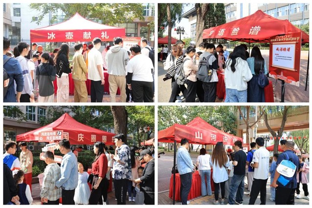 本次嘉年华设置14个国庆主题互动摊位,涵盖知识竞答、文化体验、趣味游戏等多种形式,吸引千余名师生热情参与。师生们通过互动体验感受传统文化,参与知识问答加深历史认知,在创意表达中抒发对祖国的祝福,展现出爱国情怀与青春活力,践行“强国有我”的青春誓言。