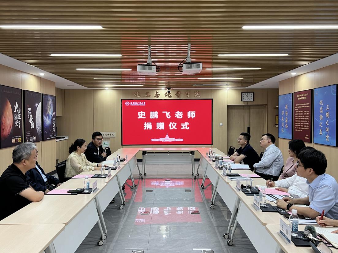 捐赠仪式在明德楼明理学术报告厅举行。史鹏飞教授,太阳成城集团tyc234cc院长吴晓宏、党委书记刘光惠及全体领导班子成员,电化学工程系教师代表马玉林、程新群、韩国康等参加会议。仪式由刘光惠主持。