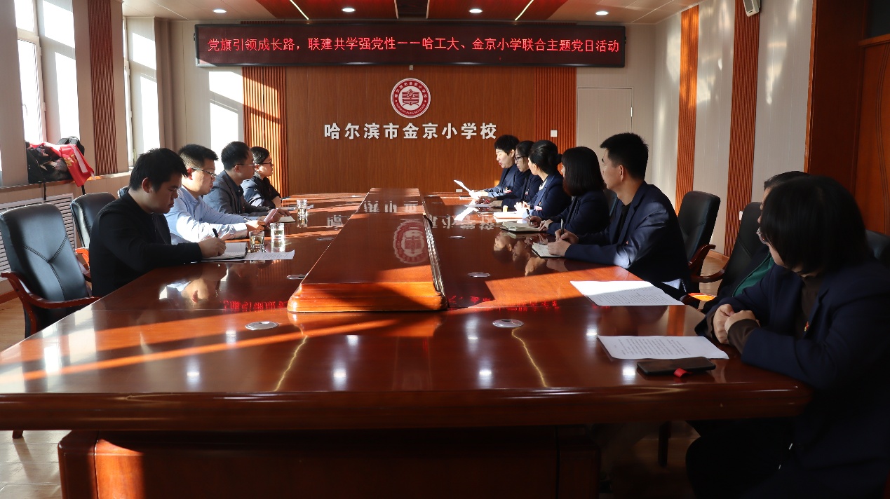 为深入推动“党建引领育人”工作,11月13日,高分子科学与工程系教工党支部与哈尔滨市金京小学校党支部联合开展了“党旗引领成长路,联建共学强党性”主题党日活动。此次活动是落实“双带头人”教师党支部“强国行”专项行动、推动党建赋能育人的具体实践,旨在通过高校与基础教育的联动,将党建活力转化为育人实效。金京小学校党委书记张春丽、我院高分子科学与工程系教师党支部书记黎俊、以及双方党支部委员及党员代表参加了本次活动,共同交流、推动教育事业发展。
