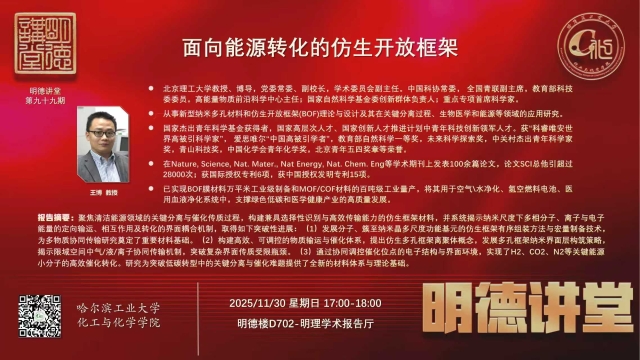报告题目:面向能源转化的仿生开放框架