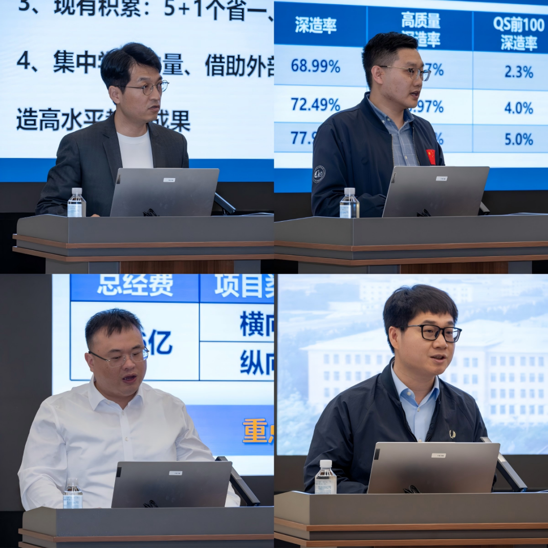 随后,各分管领导分别围绕人才培养、科学研究、国际合作、队伍建设等重点领域,就“十五五”规划各项指标及2026年重点工作、如何破解发展难题进行专项汇报。
