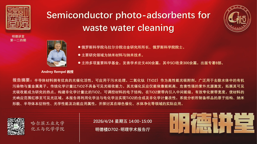 【明德讲堂124期】俄罗斯科学院乌拉尔分院冶金研究所安德烈教授学术报告通知
