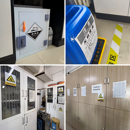 表面处理实验室面积46.5平方米,为化学类三级风险实验室,主要开展电化学沉积、表面处理等实验研究,日常使用硫酸、盐酸等强酸类化学品及部分管制危险化学品,实验种类多、试剂消耗量大、日常管理复杂度高。