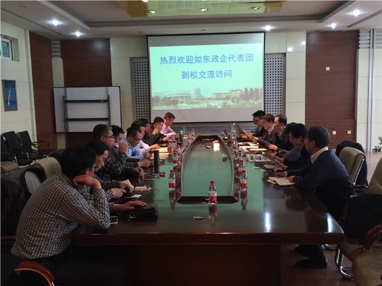 3月28日,江苏省如东县副县长许金标、江苏省科技镇长团如东团团长、如东县副县长韩喜江率领政企代表团一行来校访问,与学校就新能源、新材料、生物医药和机器人等领域产学研合作进行对接交流。太阳成城集团tyc234cc院长黄玉东、党委书记岳会敏、机电学院副院长高海波、市政学院副院长王秀蘅、生命学院党委副书记俞庆勇和黑龙江省工业技术研究院院长助理赵轶杰等与代表团一行进行座谈交流。